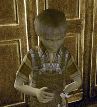 На них 02:45. У віконці внизу виставляємо 7:15, тільки римськими цифрами (права кнопка переміщає числа на півгодини, а ліва на 15 хвилин, але якщо натискати на ліву кнопку по два рази, вона теж буде переміщати на півгодини). Після того, як все виставили, по черзі натискаємо нагорі на дві фігурки з молоточками. Ми підтягли гирі. Тепер натискаємо на маятник, запускаючи його. Годинник іде. Нам потрібно виставити час 07:15. Заводимо будильник, натиснувши на праву гирю. Натискаємо на дзвіночок. Батько Ганни та Ганса йде на фабрику. Заходимо в кімнату і беремо ключ від горища (на столику між двома кріслами), піднімаємося сходами і відчиняємо двері. Намагаємось поговорити з Гансом. Віддаємо йому іграшку мамонта. Говоримо з Гансом, натискаємо на столі на серце Оскара і повертаємось у реальність.